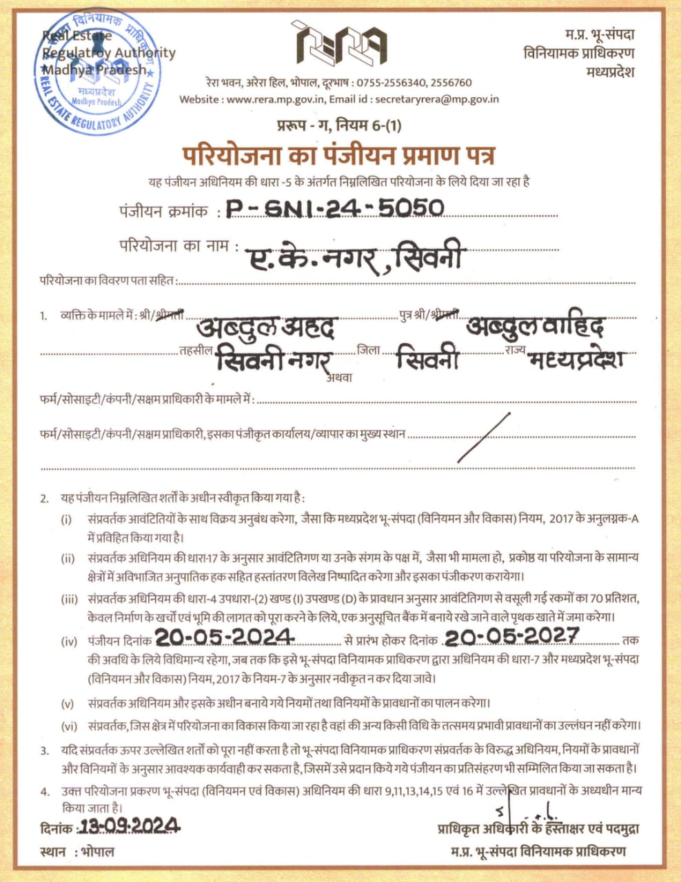 Registered under Madhya Pradesh Real Estate Regulatory Authority